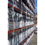 Строительные леса АРИС-600 выдерживают нагрузку 600 кг/м2 и имеют высоту до 60 м., что позволяет вести с них кирпичную кладку любых зданий.